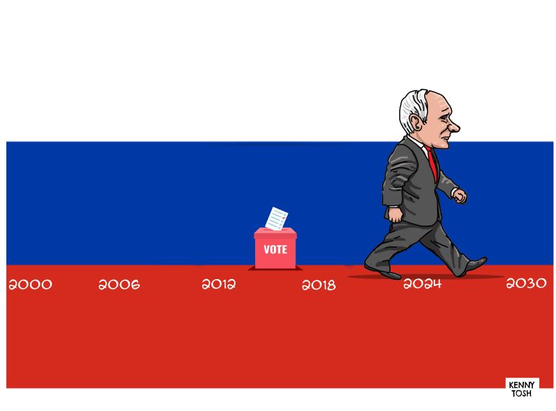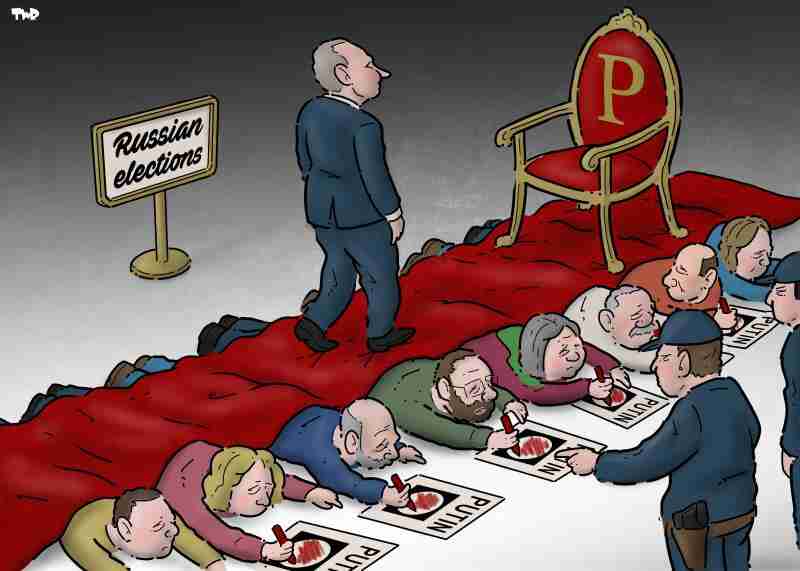 El presidente ruso Vladimir Putin fue reelecto holgadamente para un quinto mandato con 87% de los votos, según resultados preliminares divulgados este domingo. A pesar de no tener opositores reales en los comicios, Putin continúa en el poder desde el último día de 1999 y, de completar un nuevo período, habría permanecido en el poder más que cualquier otro líder ruso desde Catalina la Grande en el siglo XVIII. Segun el Kreemlin, la participación alcanzó la cifra récord del 74.22%